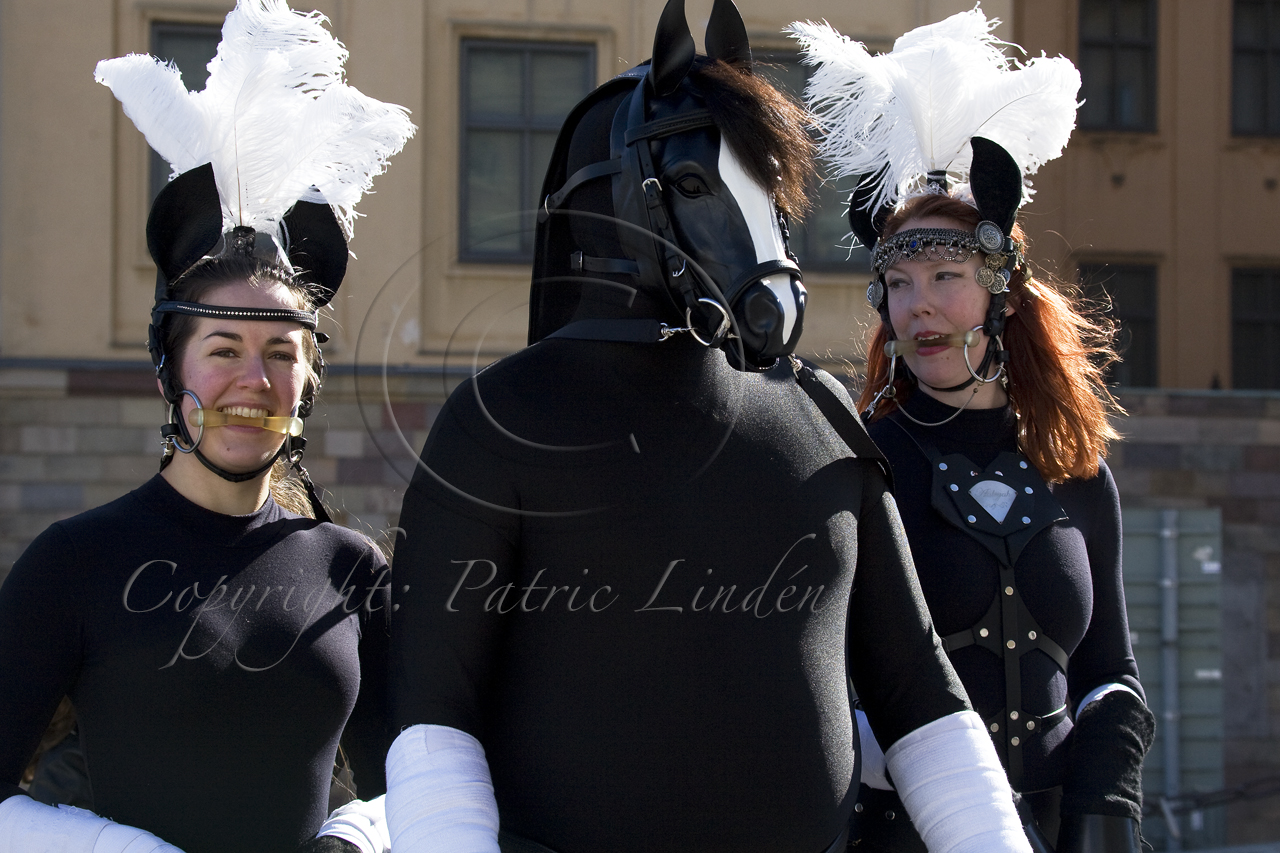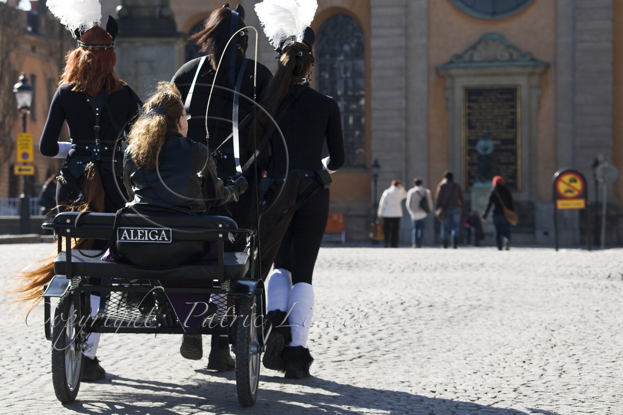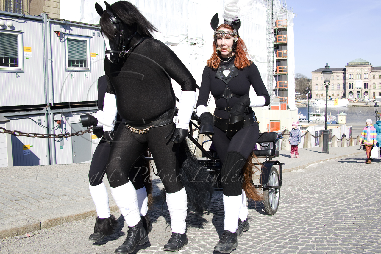 Street event är också något som ökar när solen nu har kommit tillbaka. En festlig grej dök upp på Slottsbacken där tre personer med hästutstyrsel drog en sulky, tankarna for direkt igenom till programmet ”Du blir vad du äter” och här kanske Findus är orsaken till för mycket köttätande. Många stannade upp i alla fall och tyckte hela grejen var festlig när de såg ekipaget försvinna ner i gränden bakom Storkyrkan.