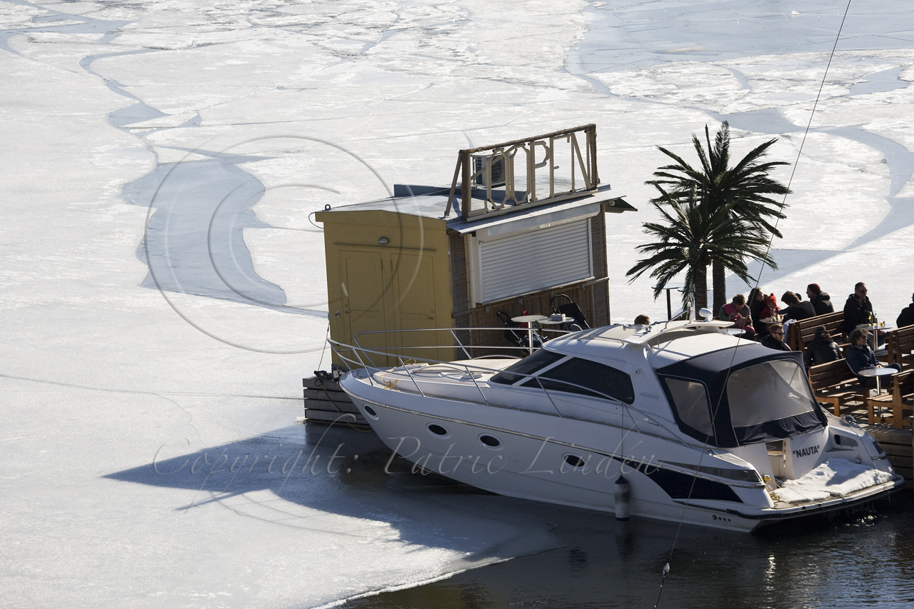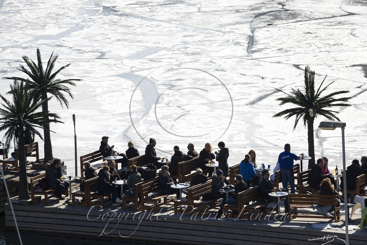 1:a april och vårsol får Stockholm att tina med en väldig fart. Solen skiner och människor är ute och njuter på Stockholms gator och torg. Uteserveringarna börjar komma igång och människor fyller de utställda stolarna och beställer in något gott att dricka. Nedanför Liljeholmsbron ligger ett häftigt ställe som är otroligt populärt. Är inte ölen tillräckligt kall är det bara trycka ner näven i vattnet och ta upp is och kyla ner den ännu mer om solen nu är för stark och hettar för mycket. Coolt är det i alla fall att isen ligger kvar och det ändå går att sitta ute.