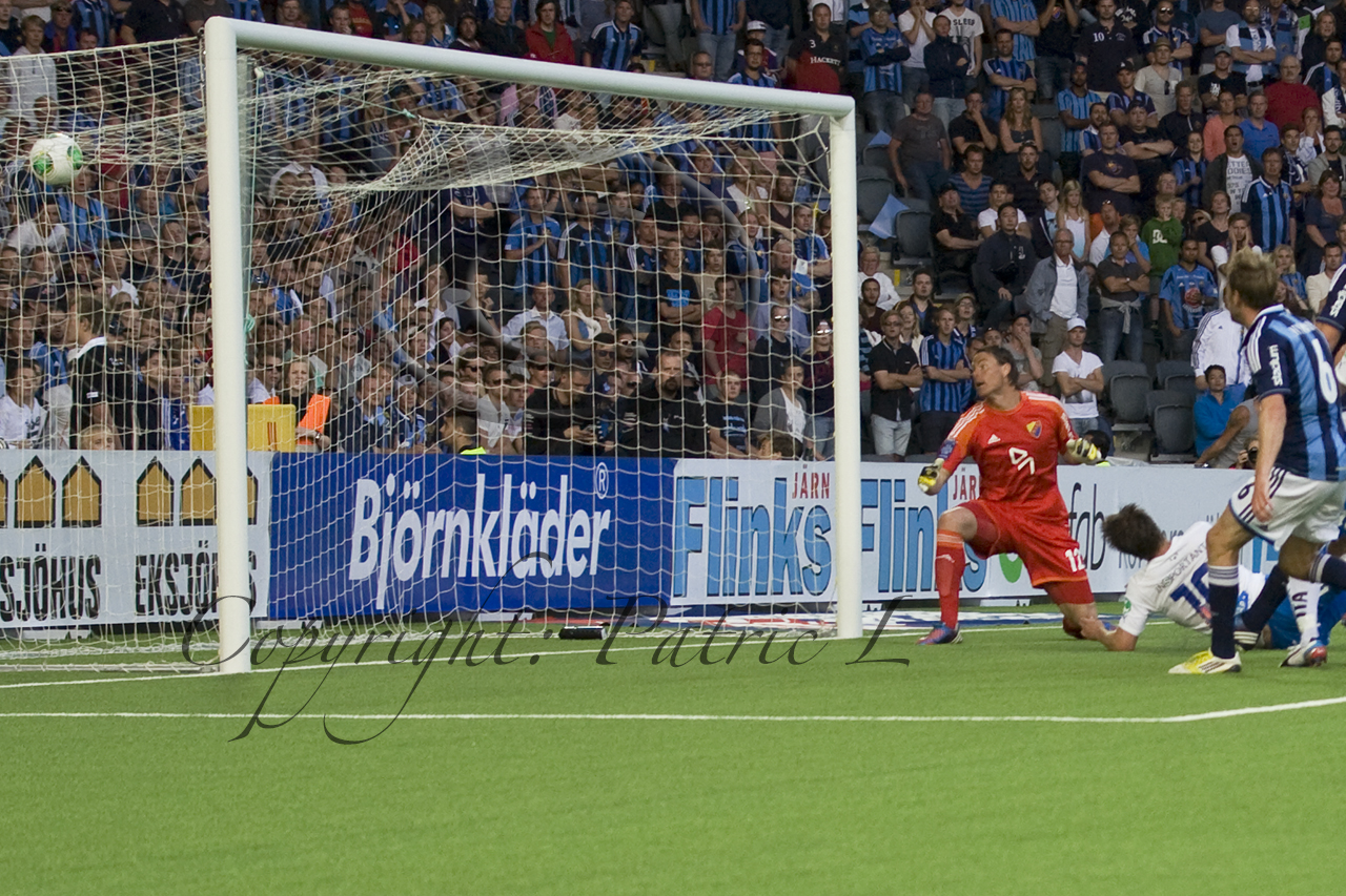 Det skulle dock komma en strut till i matchen, i den 73 minuten lyckades Norrköpings 10:a Gunnar Heidar Thorvaldsson tråckla upp bollen i takmaskorna i DIF buren. Onödigtvis retade sedan Norrköpings tian Djurgårdsfansen genom att målgesta med schhh och slängkyssar och det uppskattades inte av de blårandiga på läktarna, men supportrarna skötte det snyggt och det var riktigt bra tryck under större delen av matchen med med bra fart på sånger och takthållning. Snyggt gjort av DIF supportrarna.
