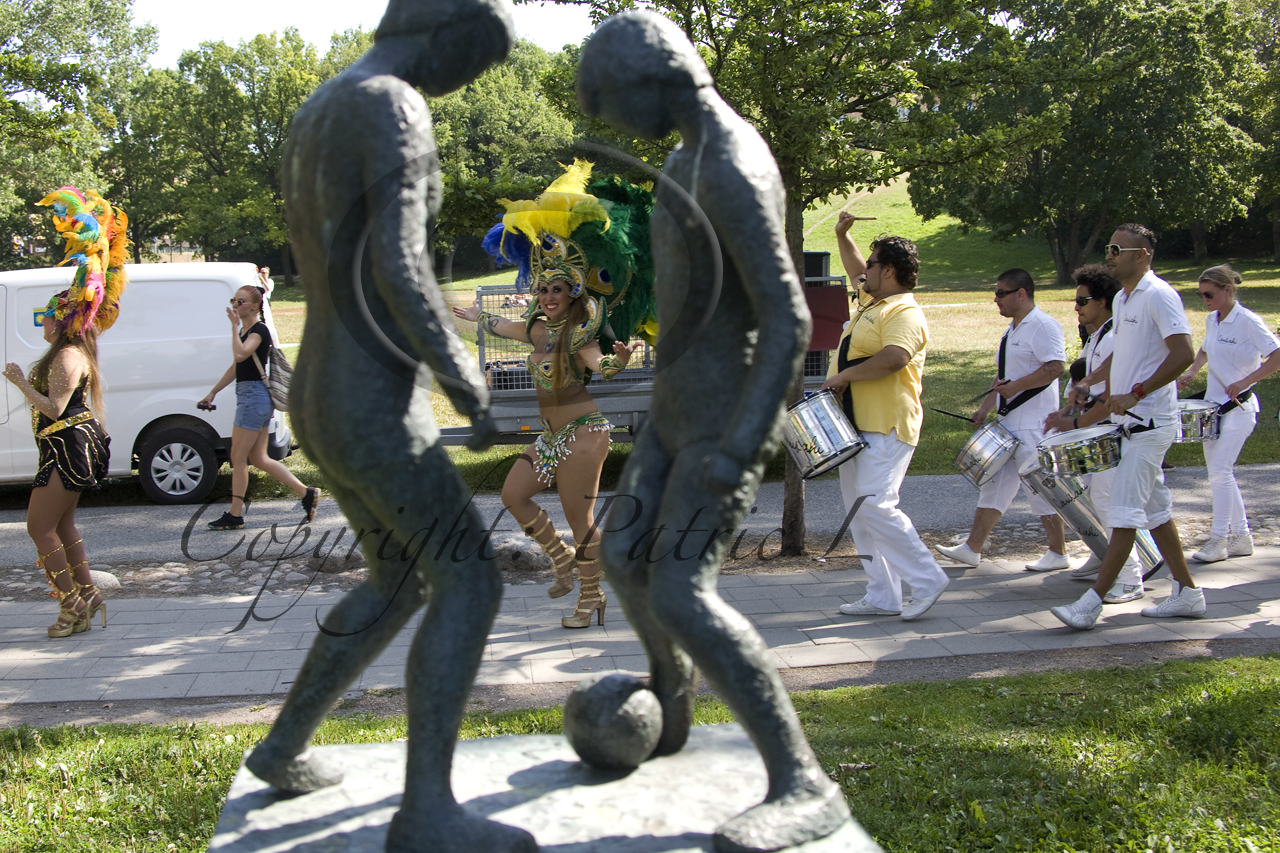 Det var också dansshow från scenen och när det var dags så klev sambagruppen upp på scenen och trummade upp stämningen innan marschen till arenan startade. Stort och blandat supportertåg begav sig mot Friends i takt till sambatrummor och dansande sambatjejer. En riktig fotbollsfest med het, glad och trevlig stämning innan finalmatchen startade i nationalarenan.
