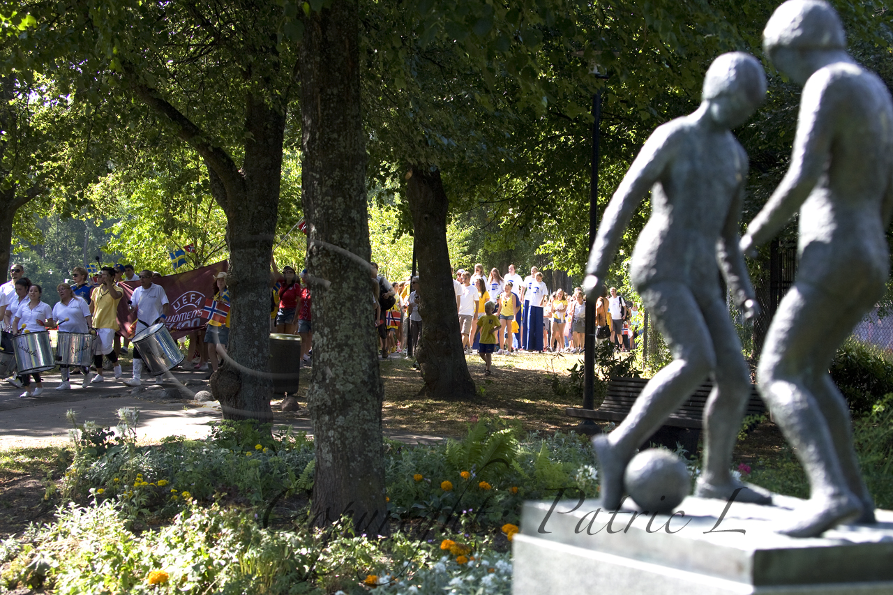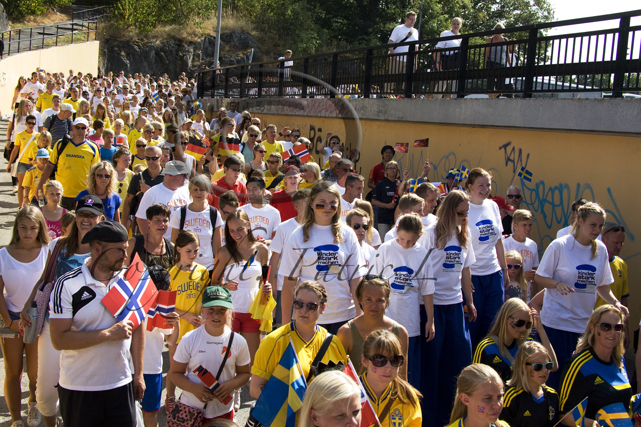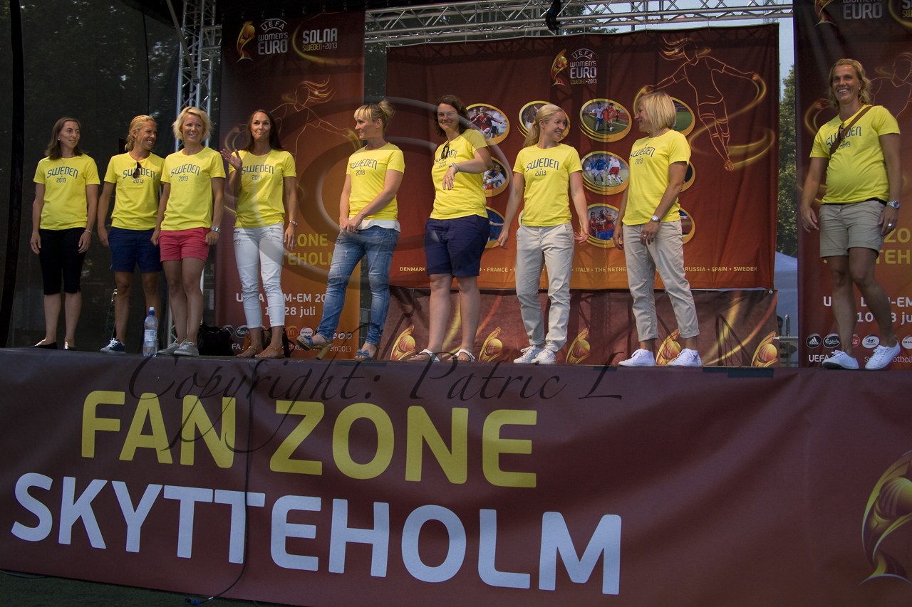 Inför kvällens finalmatch i Women´s 2013 UEFA Final Tyskland-Norge i Friends Arena hade många supportrar samlats i Fanzone för gemensam supportermarsch från Skytteholm till Friends Arena. Hoppborgar för de minsta och de tävlingssugna kunde tävla i som vem som sköt det hårdaste fotbollskottet, Vädret var absolut strålande och vindstilla så även pingisbordet och de uppställda fotbollsspelen var välbesökta. Innan marschen gästades scenen av stora delar av EM-damlandslaget som tog EM silver år 1995