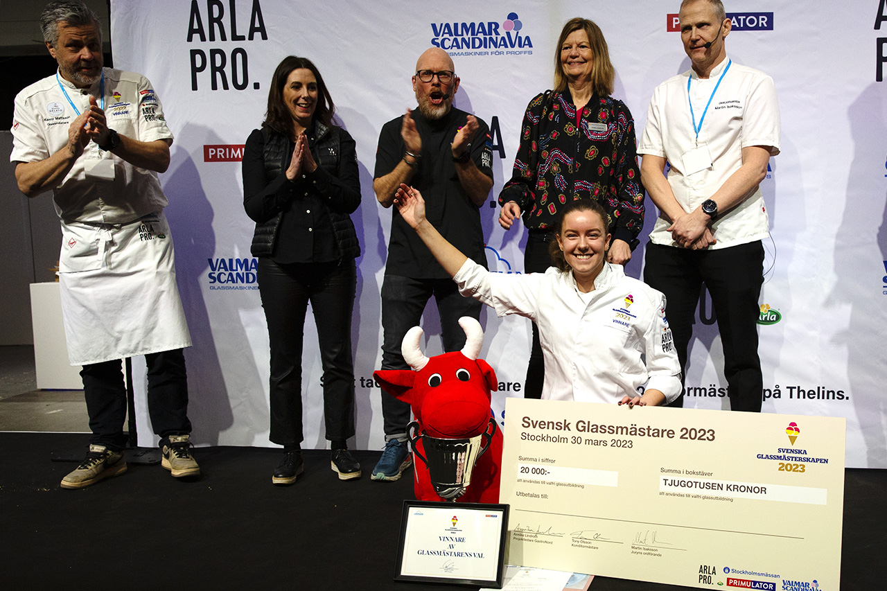Efter noga överväganden och jurydiskussioner kommer juryn fram till vinnare och fattar beslut att segern i Glass-SM 2023 gick till Maja Gustafson i familjeföretaget Gelaterian Göteborg