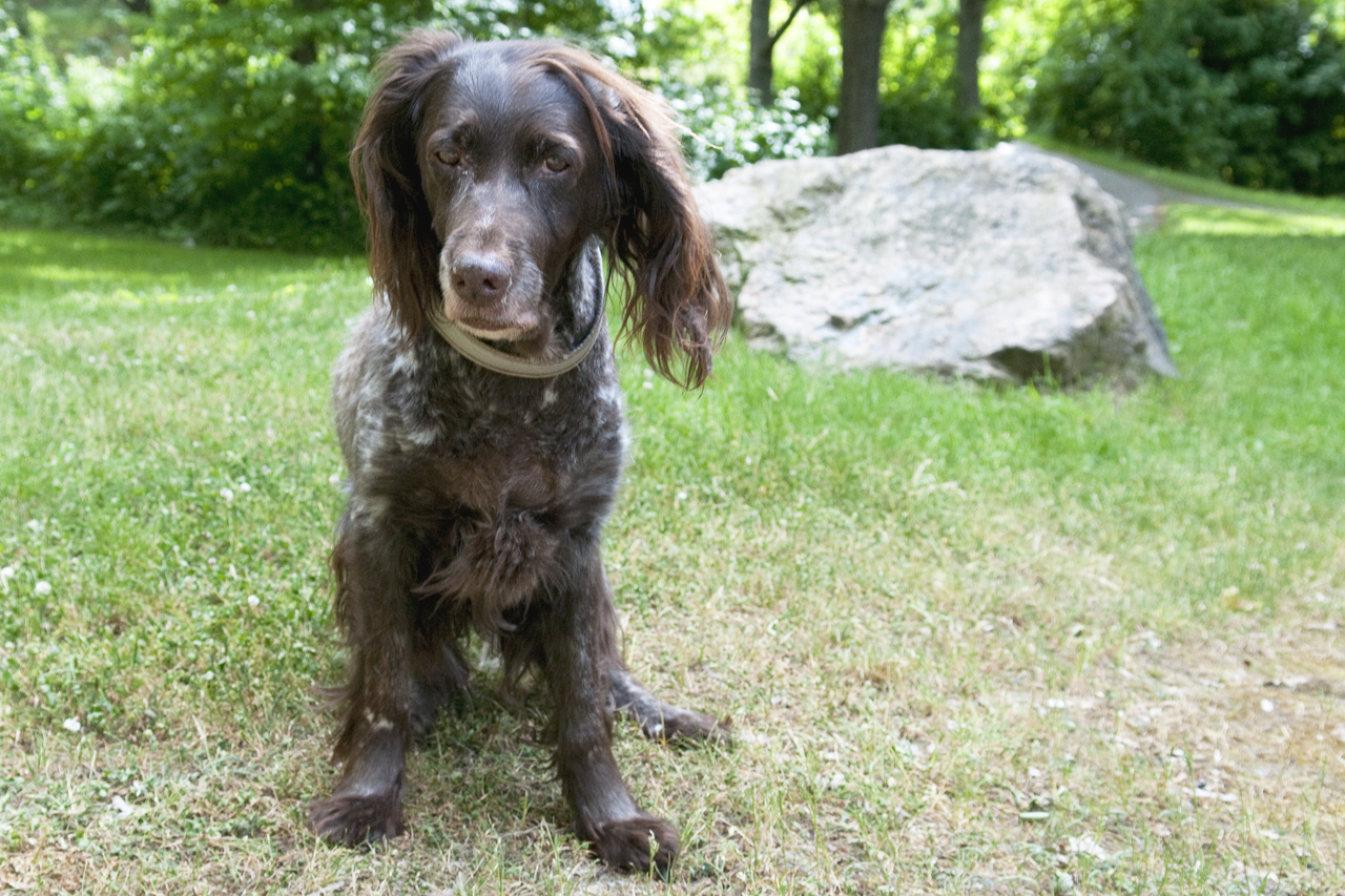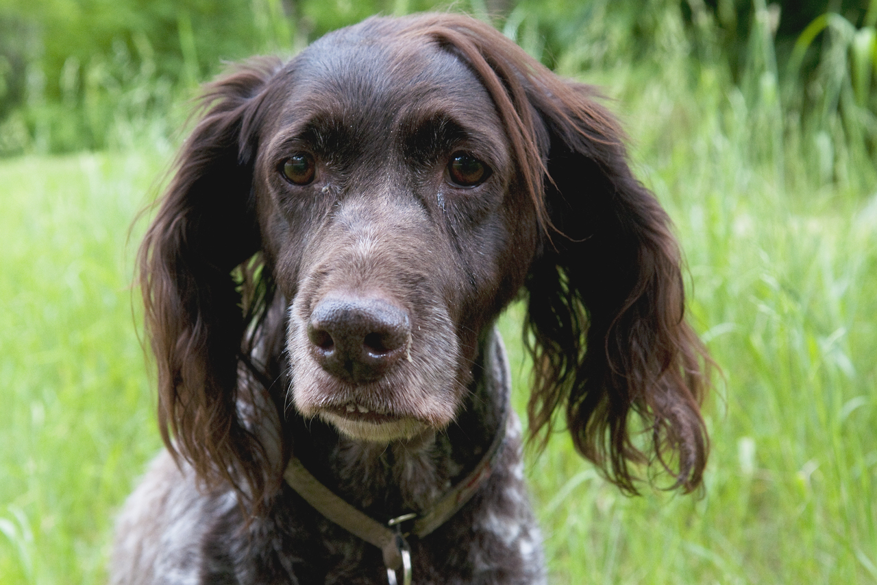 Kira är en stående fågelhund och har en del ripjakt i tassarna. Hennes färdigheter lever vidare efter pensioneringen där hon gärna fortsätter ställa en duva eller hare ibland.