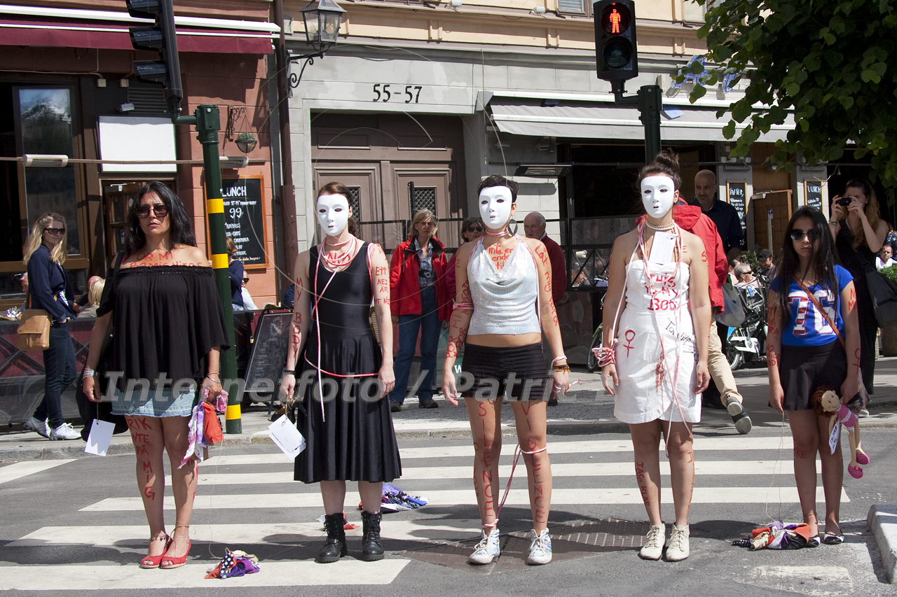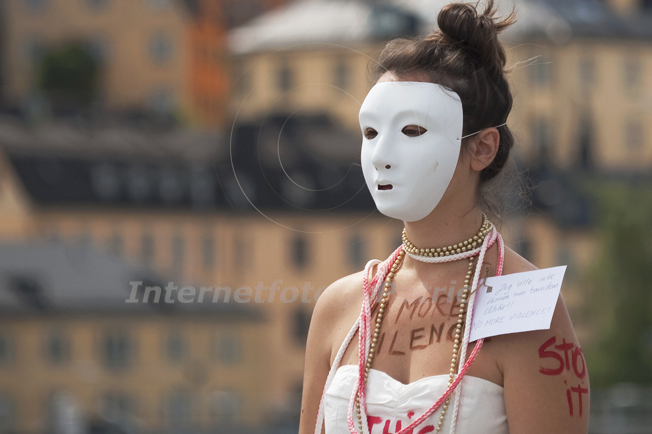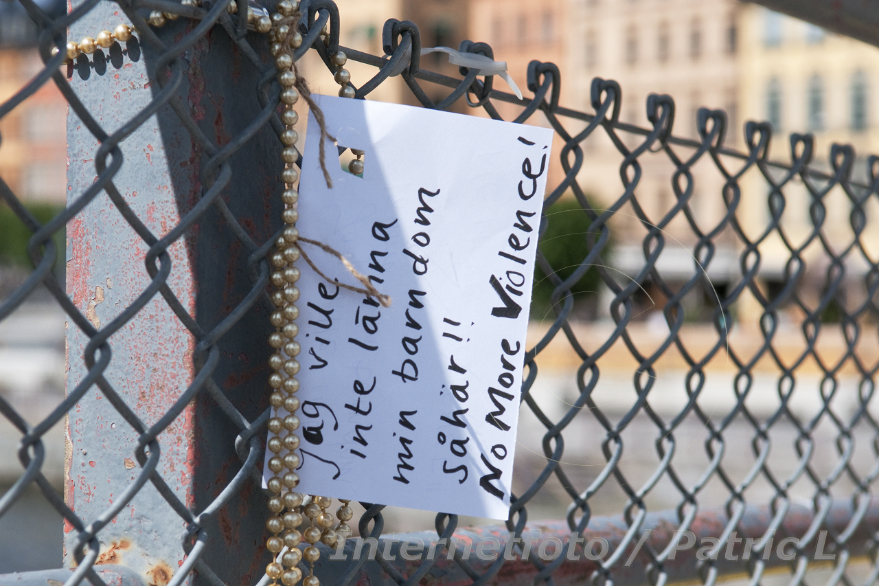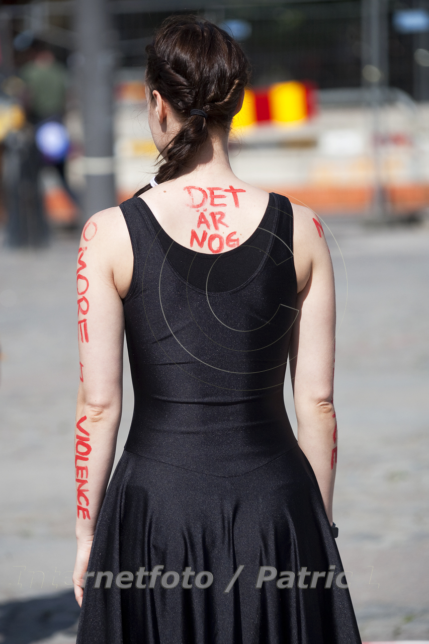 ”No more Violence” Fyra kvinnor och ett barn manifesterade mot det våld många kvinnor och barn utsätts för. De gick tyst och sakta med start från Järntorget i Gamla Stan, upp till Slussen vidare Götgatsbacken ned till Medborgarplatsen.