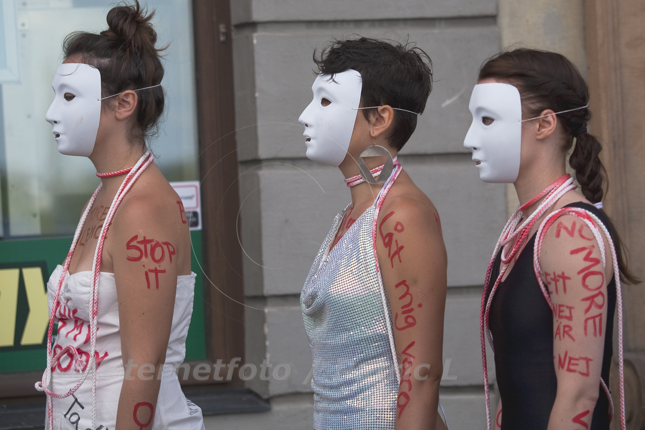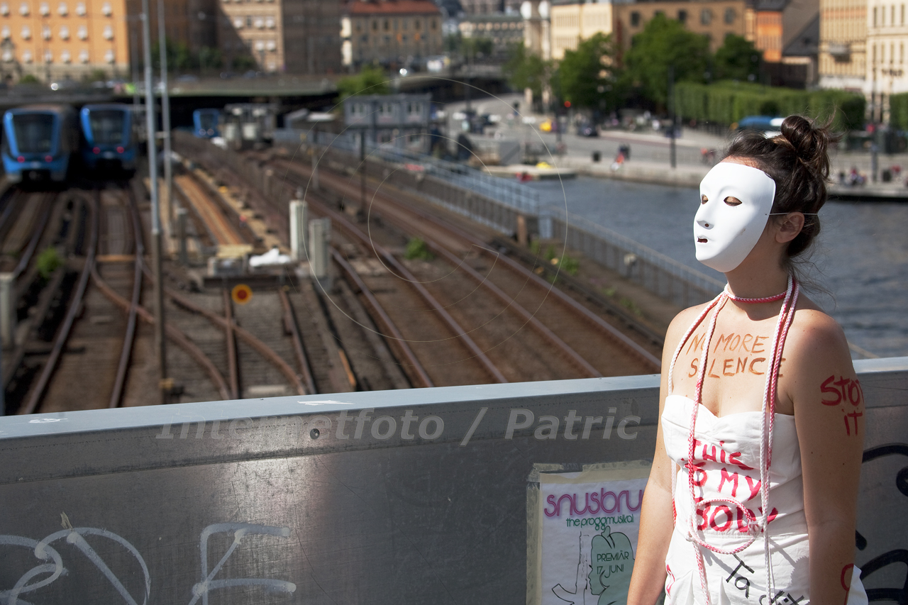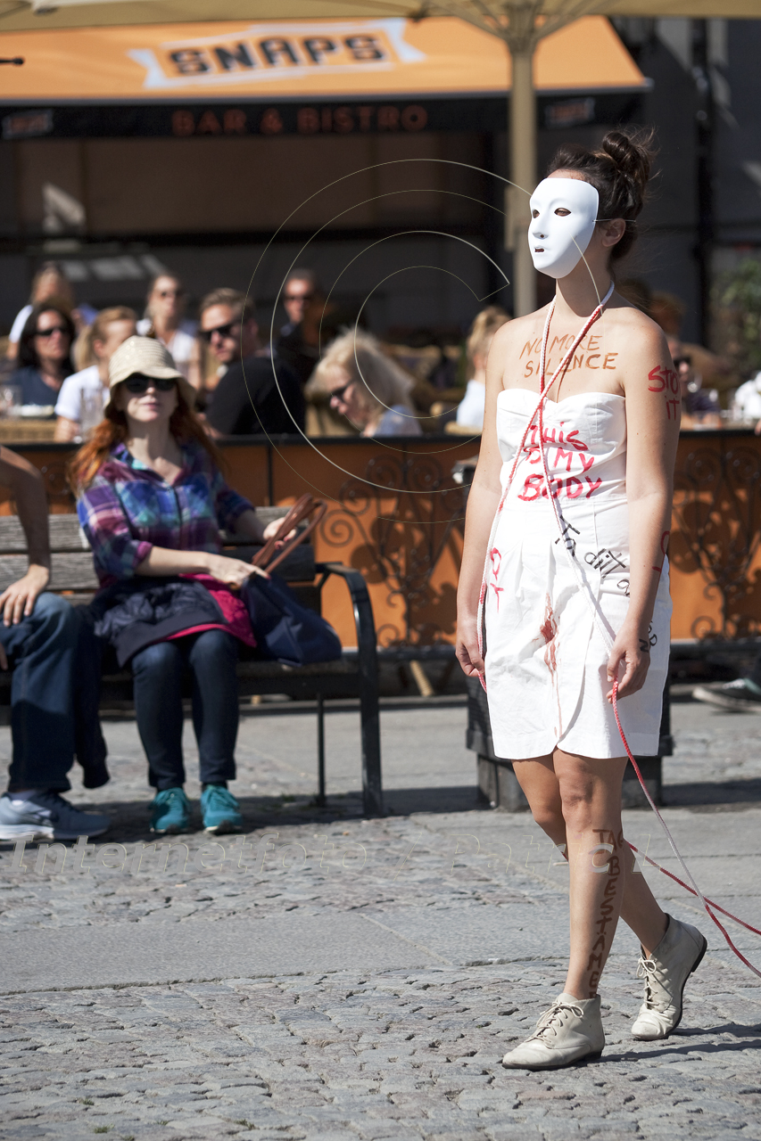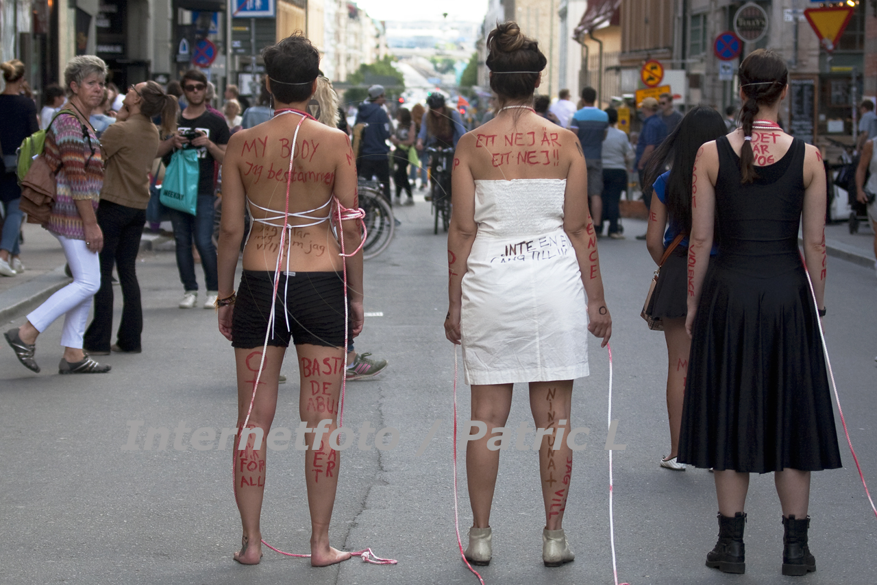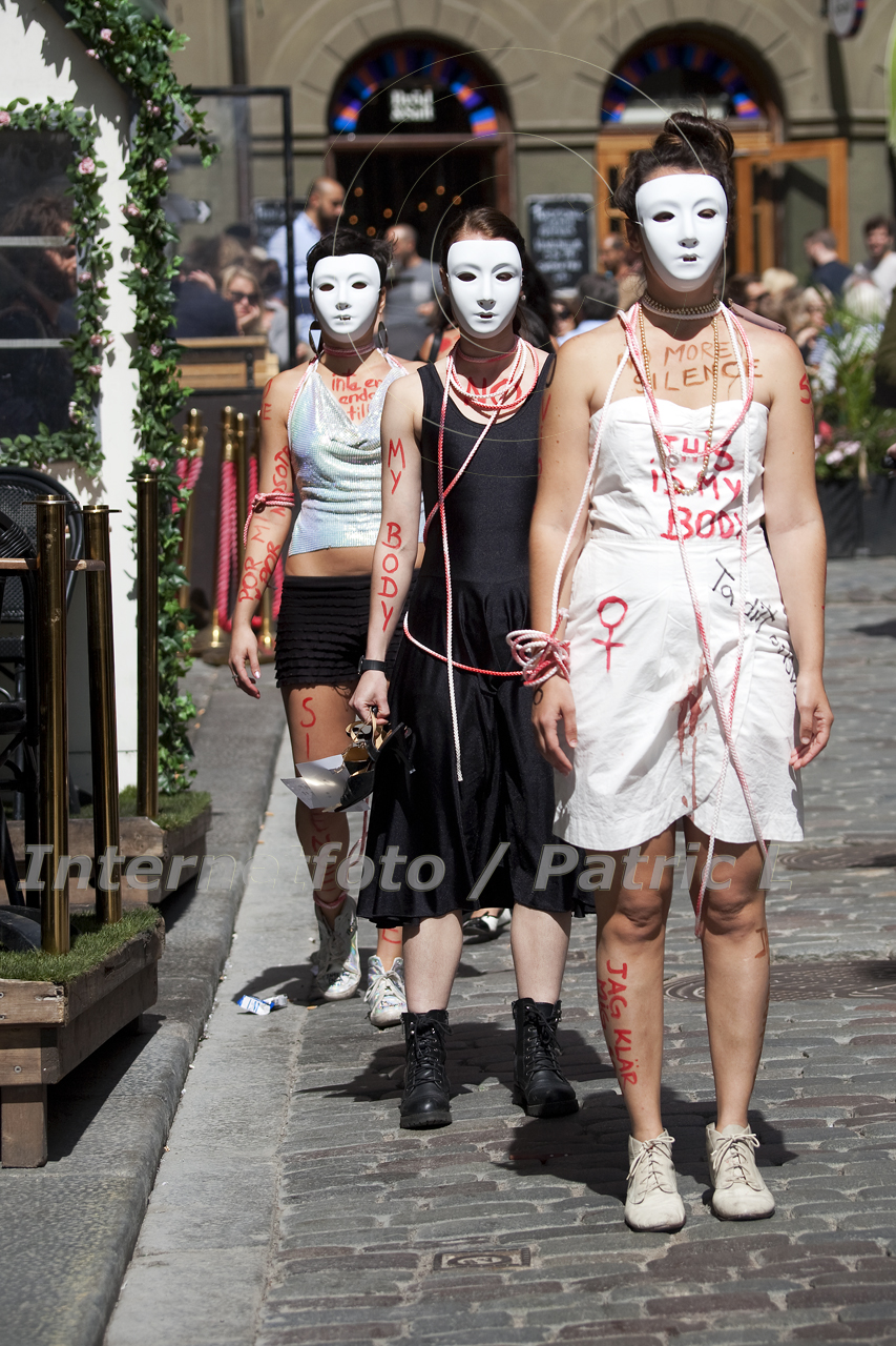 ”No more Violence” Fyra kvinnor och ett barn manifesterade mot det våld många kvinnor och barn utsätts för. De gick tyst och sakta med start från Järntorget i Gamla Stan, upp till Slussen vidare Götgatsbacken ned till Medborgarplatsen.