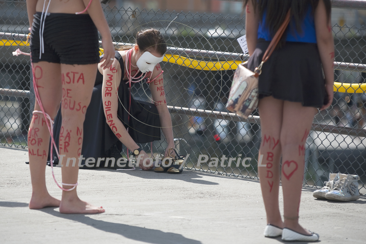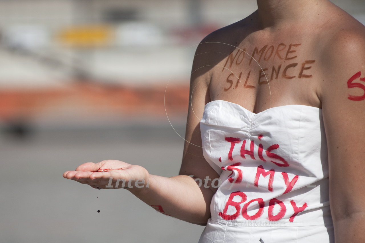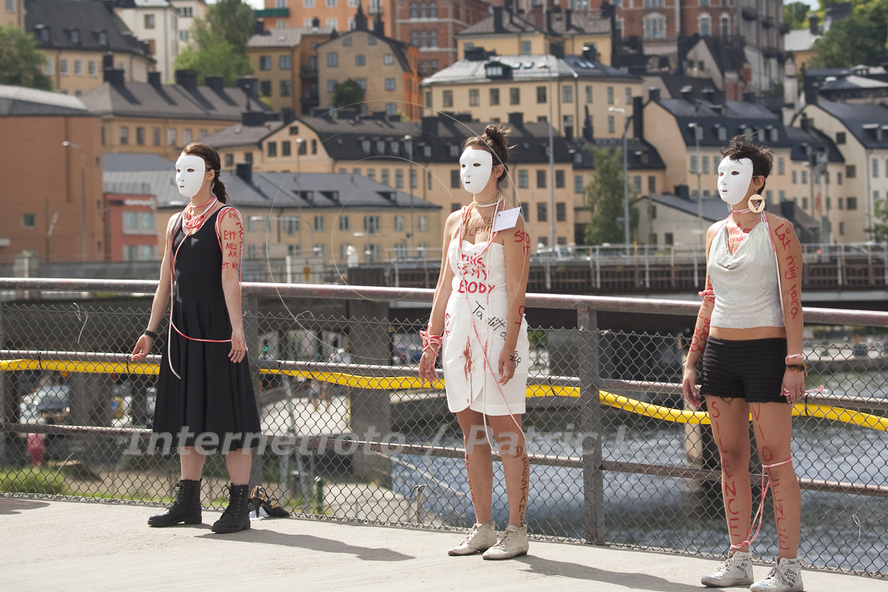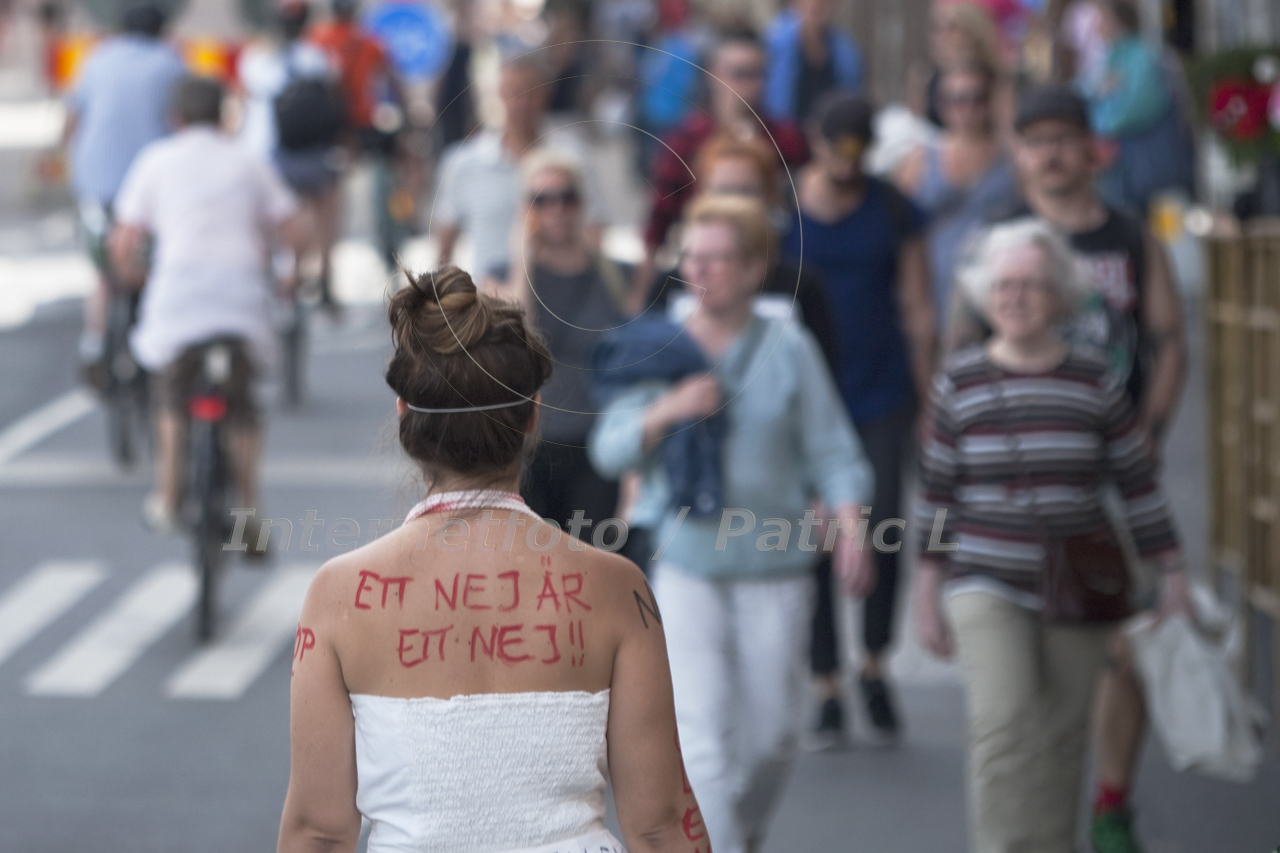 ”No more Violence” Fyra kvinnor och ett barn manifesterade mot det våld många kvinnor och barn utsätts för. De gick tyst och sakta med start från Järntorget i Gamla Stan, upp till Slussen vidare Götgatsbacken ned till Medborgarplatsen.