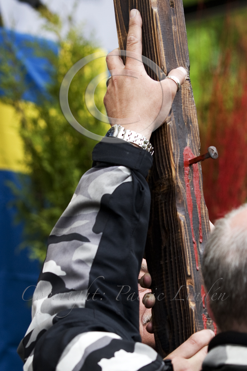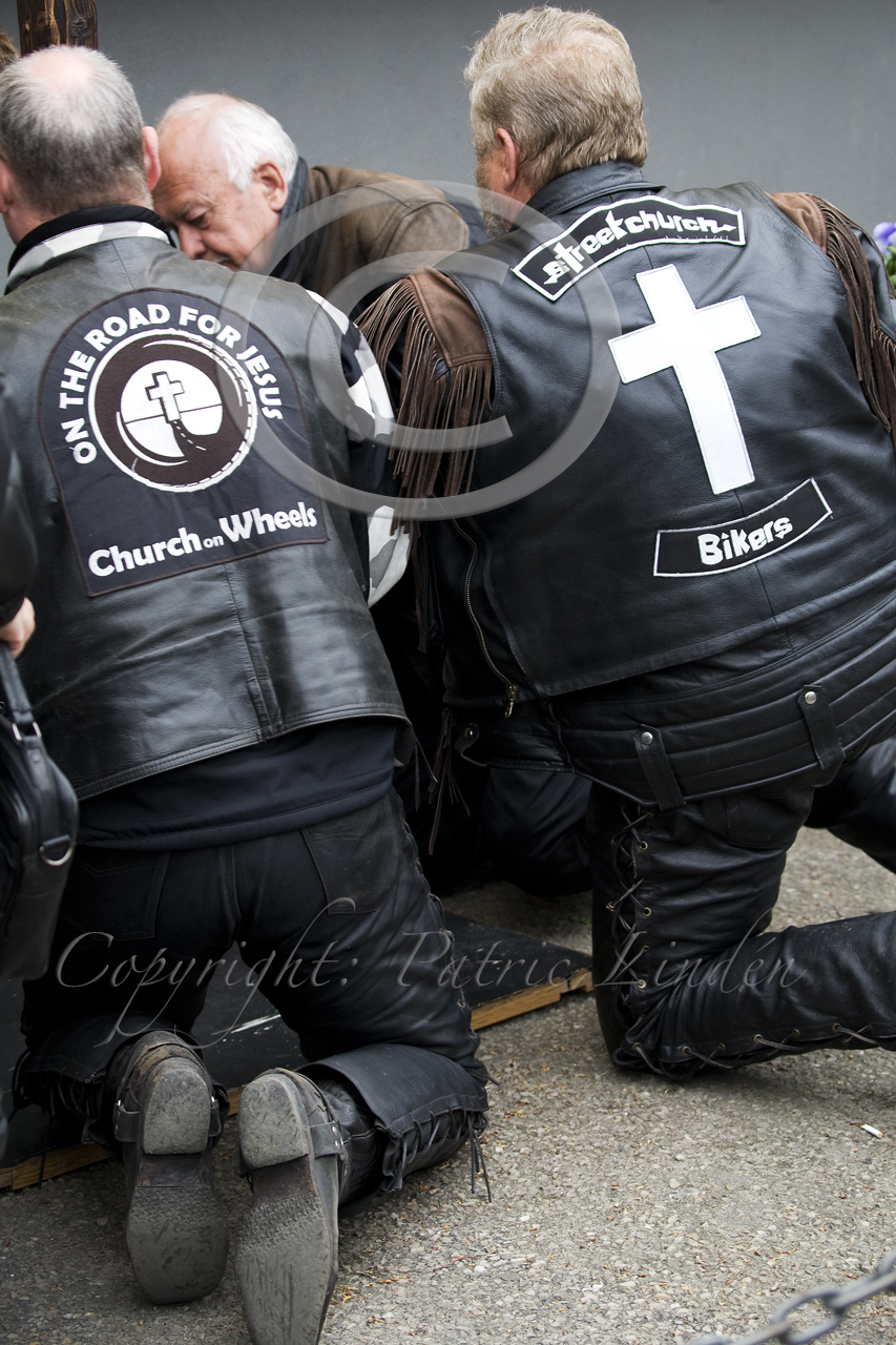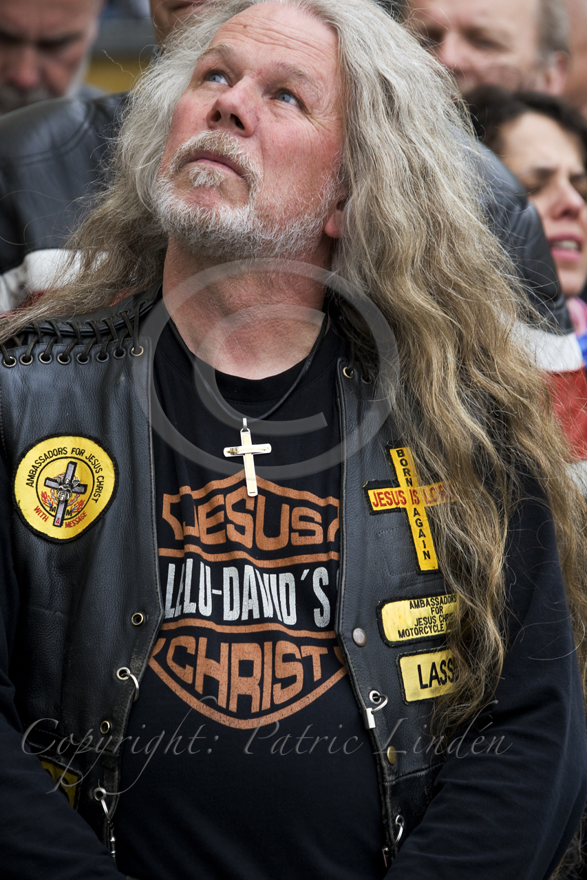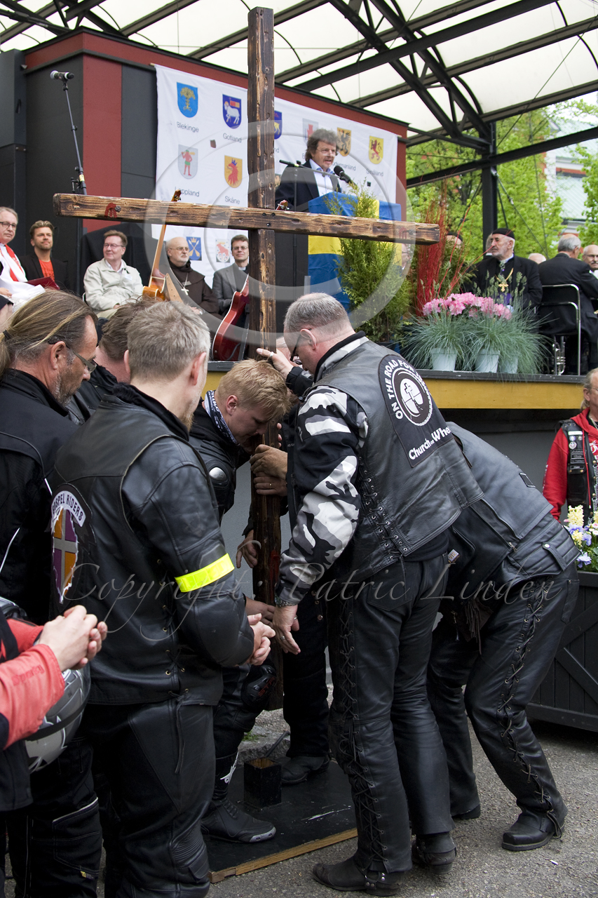 Pingstafton och Jesusmanifestation i Kungsträdgården. Efter körsång och paneldiskussion på den stora scenen blev det korsresning av MC medlemmar från Jesus Christ, Holy Riders, Church on wheels, Street Church bikers med flera. När korset rests och medlemmarna gått ned på knä för bön inleddes en klockringning. Så det var en kristlig tillställning i Kungsträdgården denna Pingstafton.