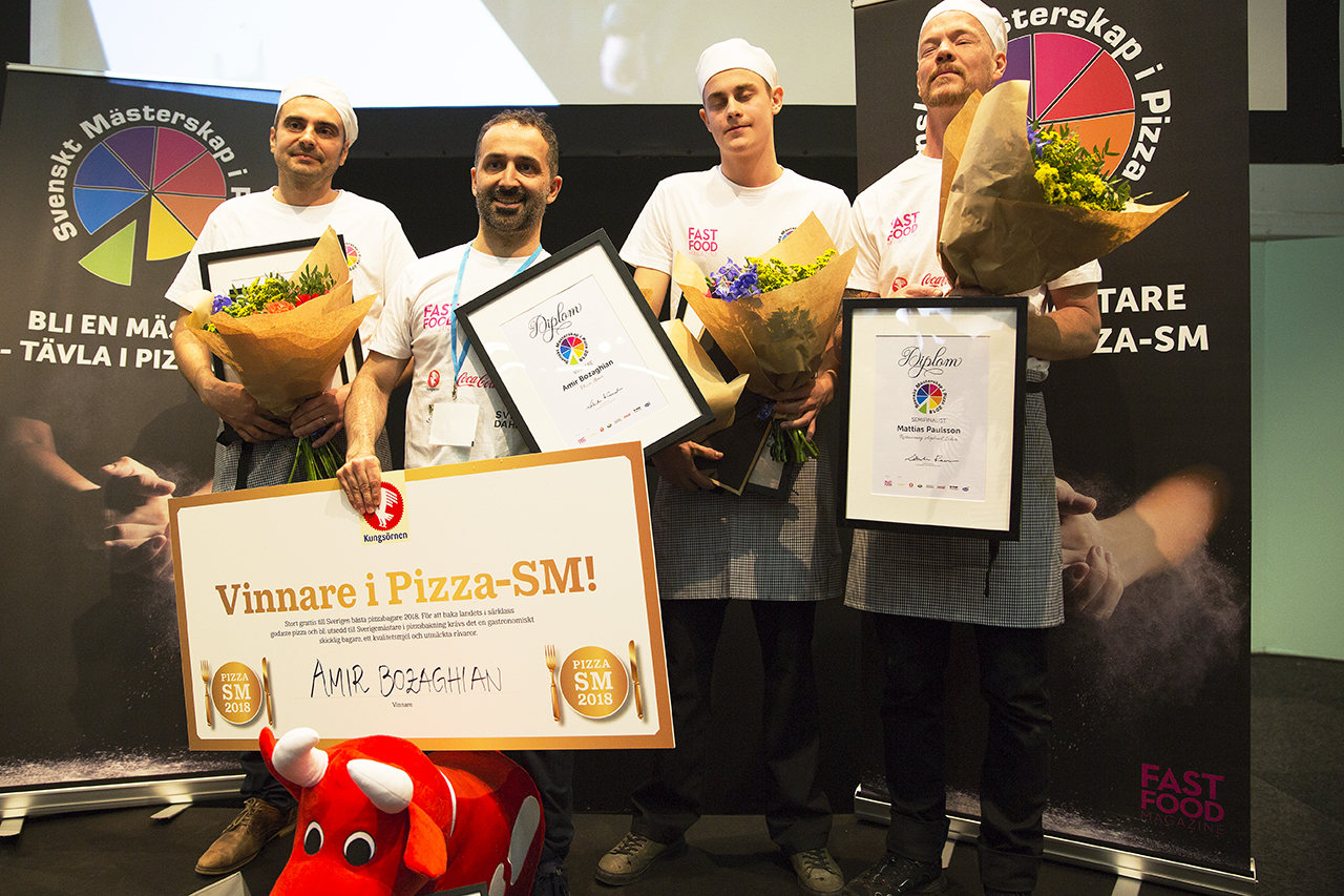 I startfältet var det sju deltagare där fyra tog sig vidare till final. De levererades spännande specialpizzor och intressanta varianter på Margheritan. Men det var ändå till slut Amir Bozaghian på Vezzo i Umeå som tog hem Svenska mästartiteln i Pizza-SM 2018