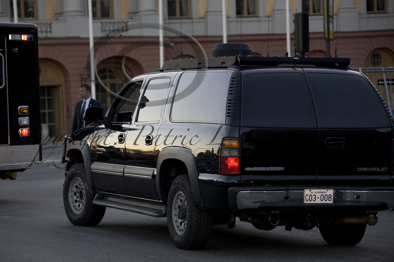 När USA president Barack Obama lämnar Vita Huset i Washington för resa flyger han i Air Force One, en stor Boeing 747 med all tänkbar utrustning och inredning. Han har även med sig en flotta av bilar som ökar skyddet för honom vid hans landtransporter. Frågan som väcks är bara vad för slags utrustning som finns i bilarna? Vid besöket i Stockholm visade sig att TV kameror har flimrat till och störts ut när presidentens bil ”Beast” passerar, och det verkar inte helt otroligt att något fordon i kortegen har med sig signalstörningsutrustning. En märklig bil är en SUV med väldigt många antenner och som skulle kunna innehålla en hel del elektronik. Avlyssning har och är en av de stora frågorna som USA s regering har att tampas med. Tyskland är ett av länderna som går hårt mot USA efter omfattande påståenden att USA avlyssnar allt från både FN och EU- kontor till länders regeringar och dess enskilda individer.