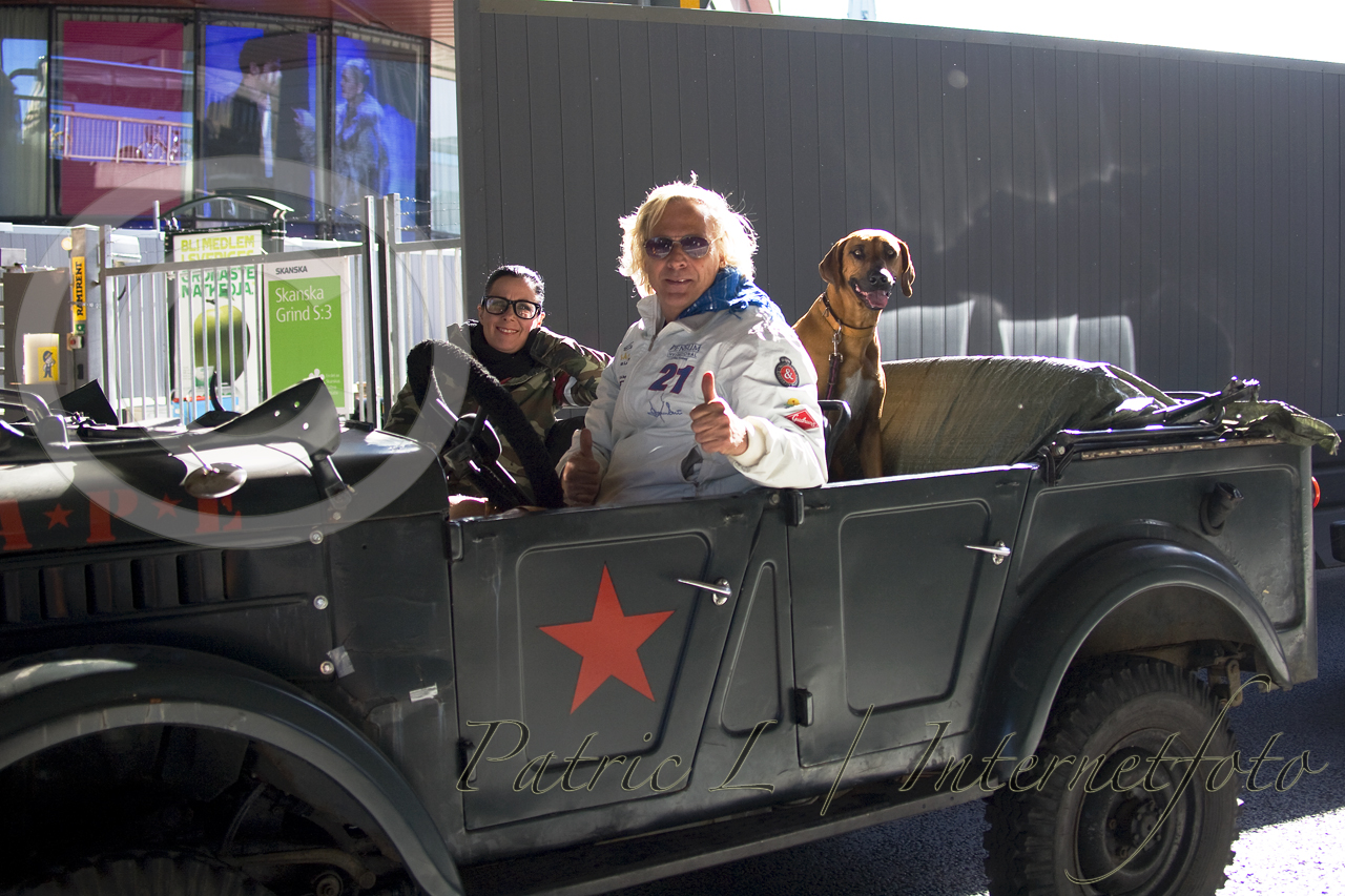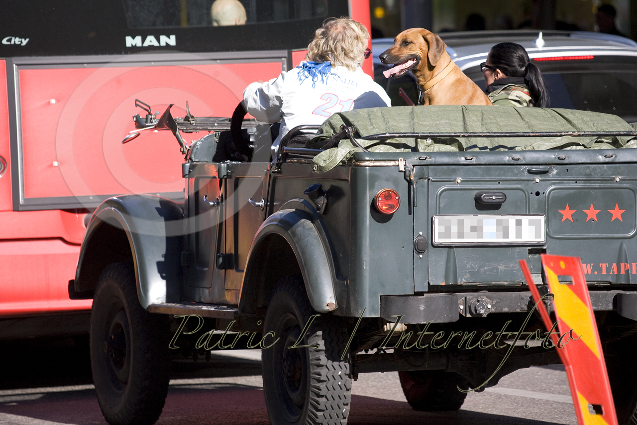 StartSpontanmöteRhodesian Ridgeback i öppen Jeep