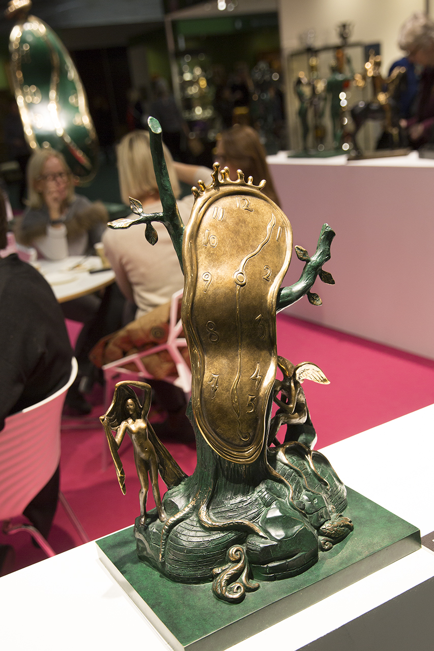 Antikmässan 2019 är Europas för närvarande största Dalíutställning. Här står cirka 35-40 skulpturer som även är till salu. Priserna är uppgett i euro.
