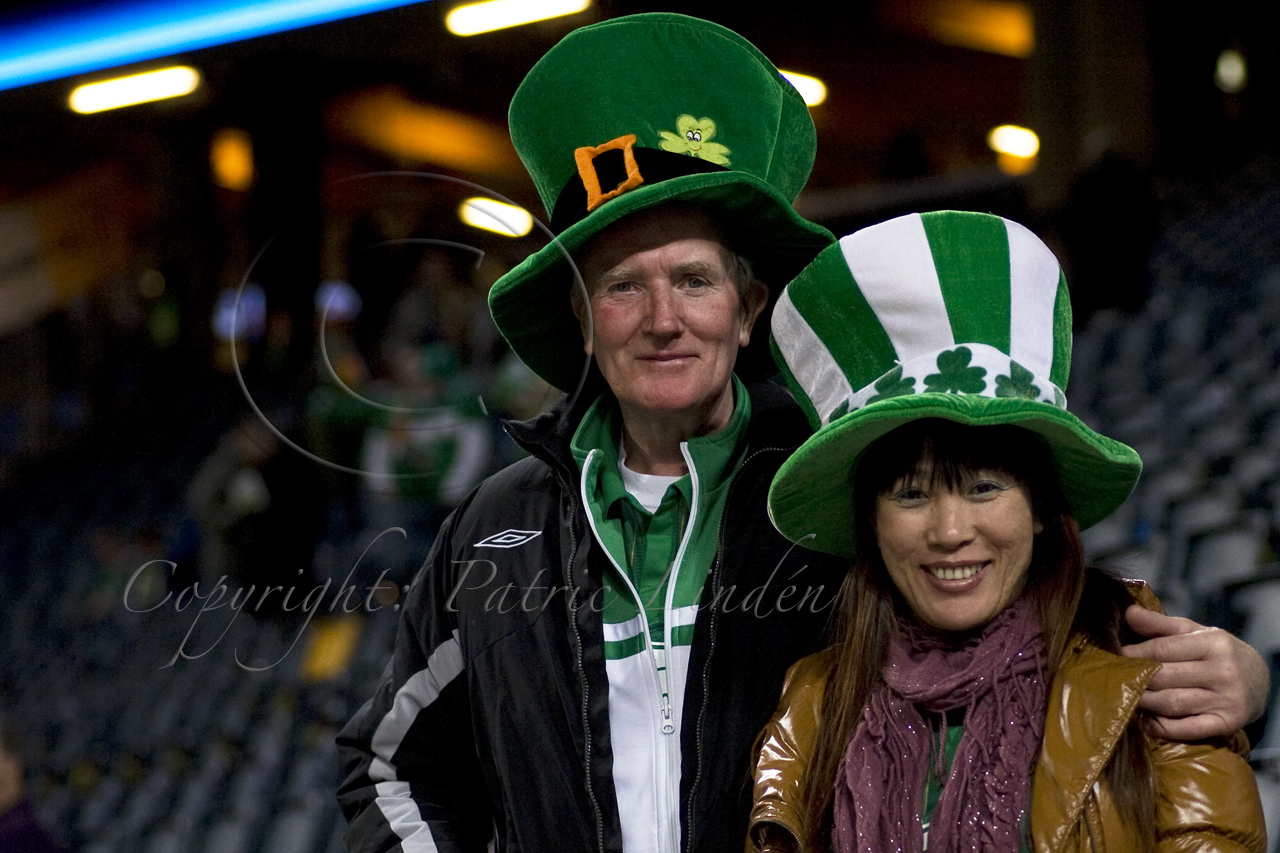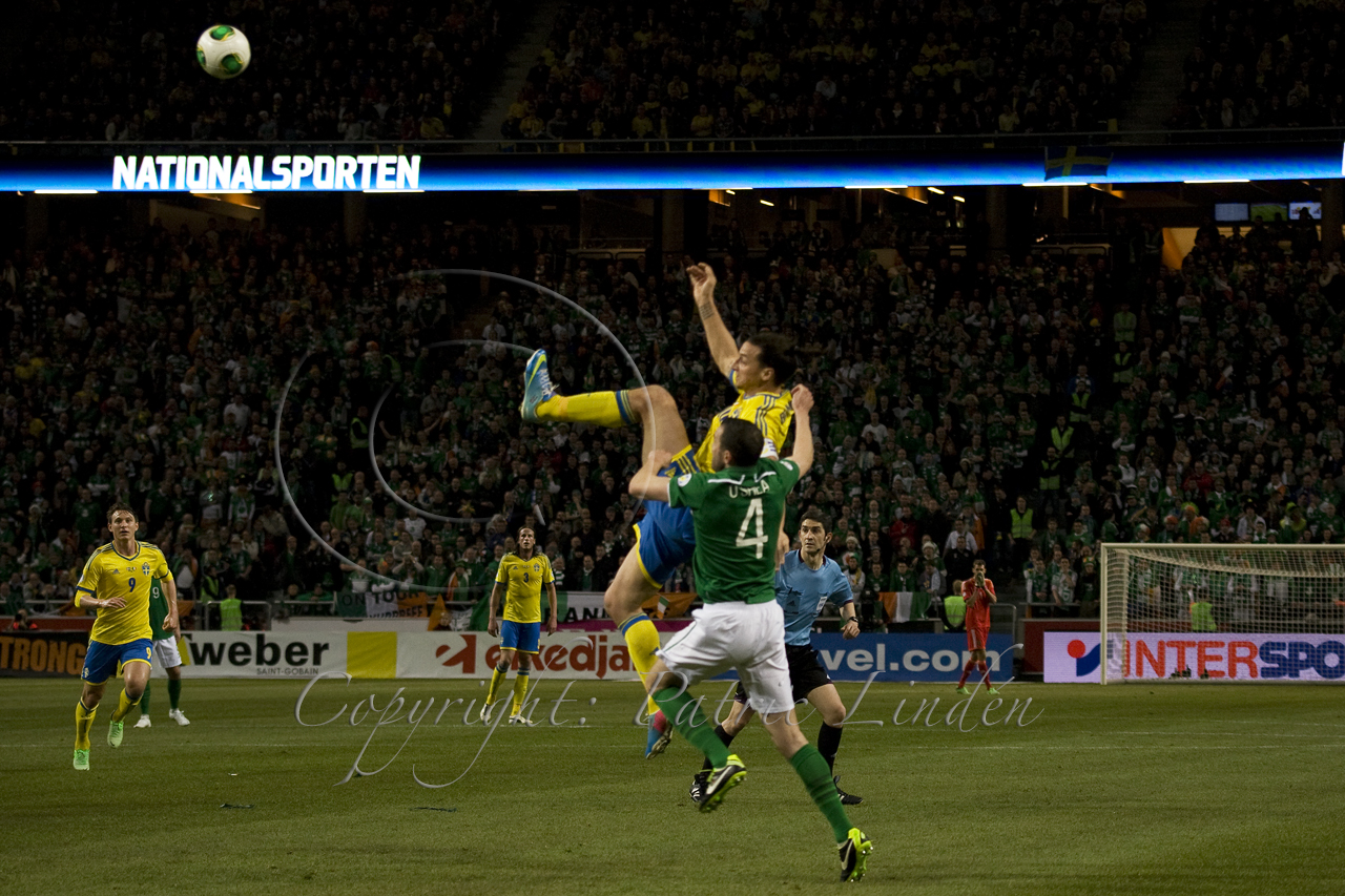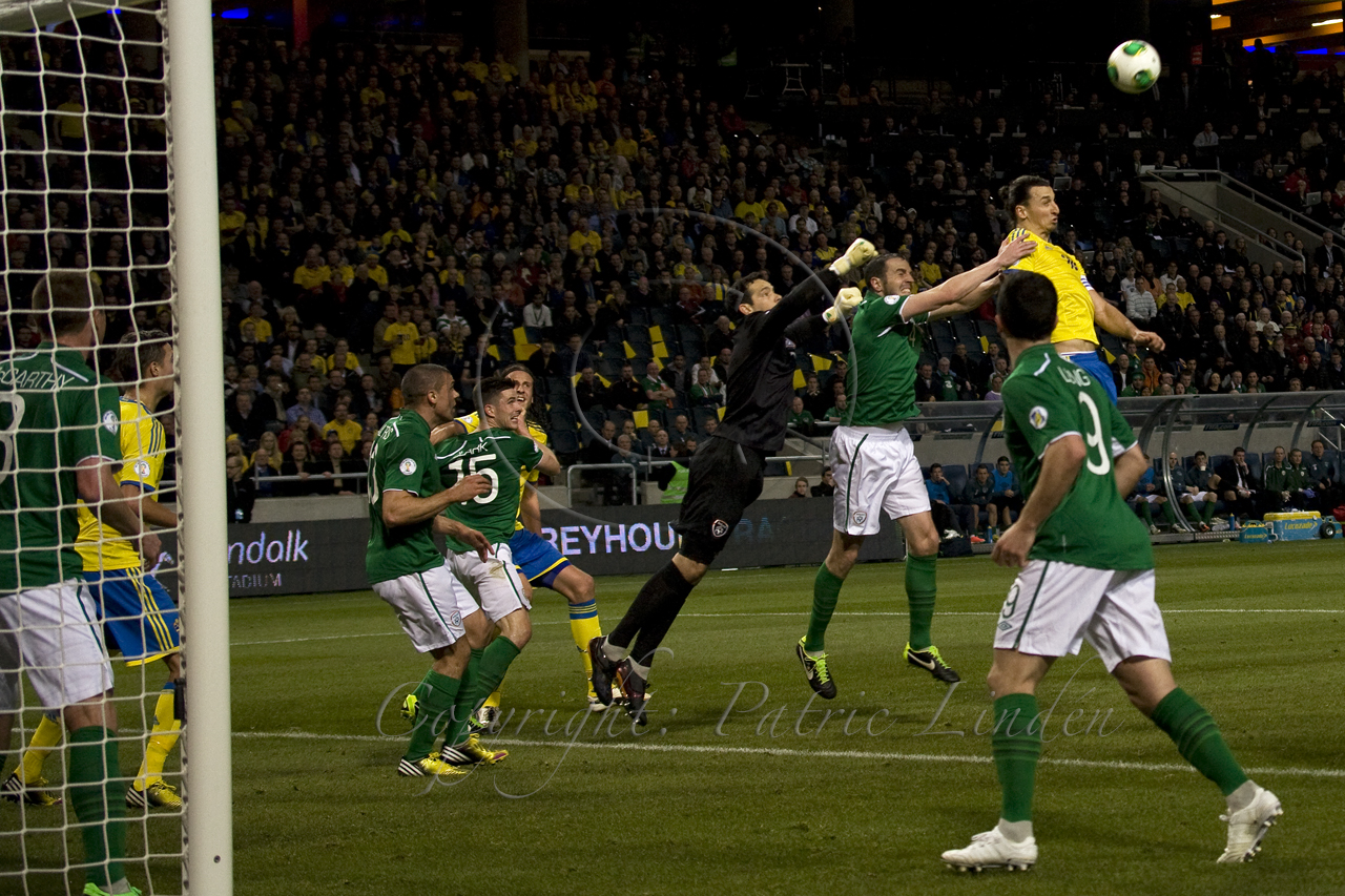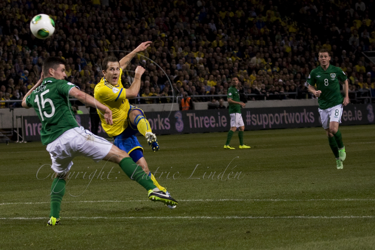 Sverige spelade ikväll den första betydande landslagsmatchen på gräset i Friends Arena. Sverigetruppen tog sig an Irland i en VM kvalmatch som slutade 0-0 inför 49 436 personer på läktarna. Publiken fick se en sömnig match där matchöppningen var till Irländarnas fördel de första 20 minuterna. Inför matchen hissades en varningsflagg för att Zlatan Ibrahimovic, Pontus Wernbloom och Andreas Iskasson stängs av nästa kvalmatch om de varnas. Irlands coach Giovanni Trapattoni hade också önskemål att matchen skulle spelas under bar himmel, men sent på matchdagen beslutades det ändå att tackluckan över Friends Arena skulle ligga kvar, och skönt var det ! + 20 är skönare och publikvänligare nu när ändå möjligheten finns att spela inomhus, varför då öppna upp när det är en massa minusgrader ute. Matchbilden kom dock att ändras en aning och Sverige fick några fina chanser att näta trasan i maskorna bakom David Forde i den Irländska målvaktströjan. Tobias Hysén var riktigt löpvillig och kämpade på bra, han förtjänade verkligen att få vara den som pangade in bollen även om nu Zlatan hade flertalet luftakrobatskonster för sig. Ibra var också ganska hårt bevakad så fort inlägg, hörnor och inkast riktades mot det Irländska ramvirket.