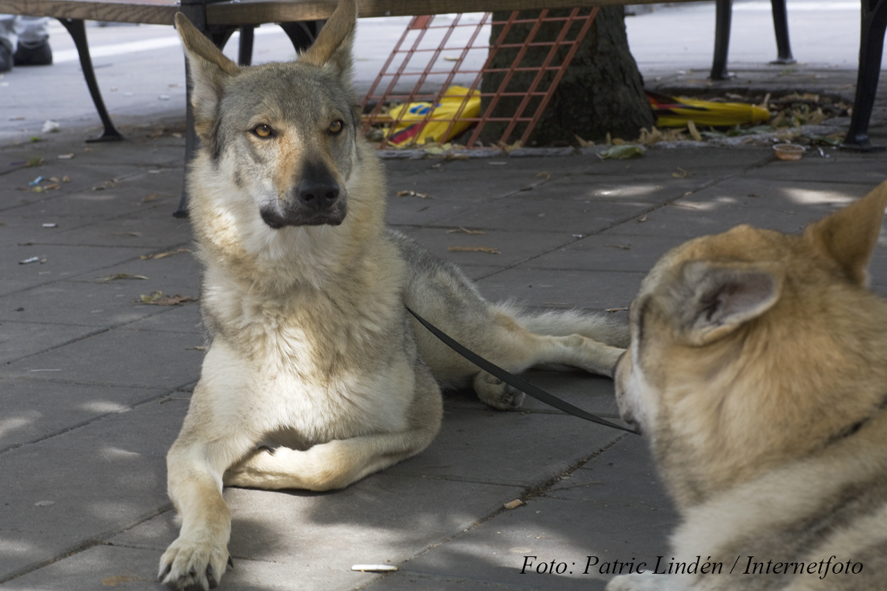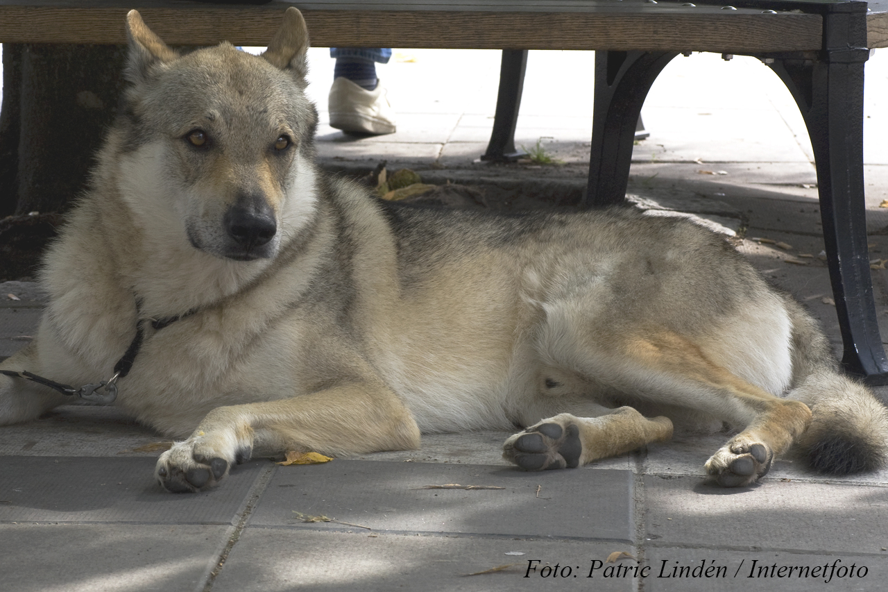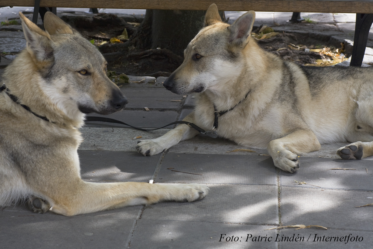 Tjeckiska varghundarna Hattai, två år, tik och femåriga hanen Okame tar igen sig efter en varm dag på stan med matte och husse. Närmare varg än så här är det svårt att komma. Från början korsades varg och schäfer där rasen är framtagen till vakthund av den tjeckiska militären mellan åren 1955 – 1965